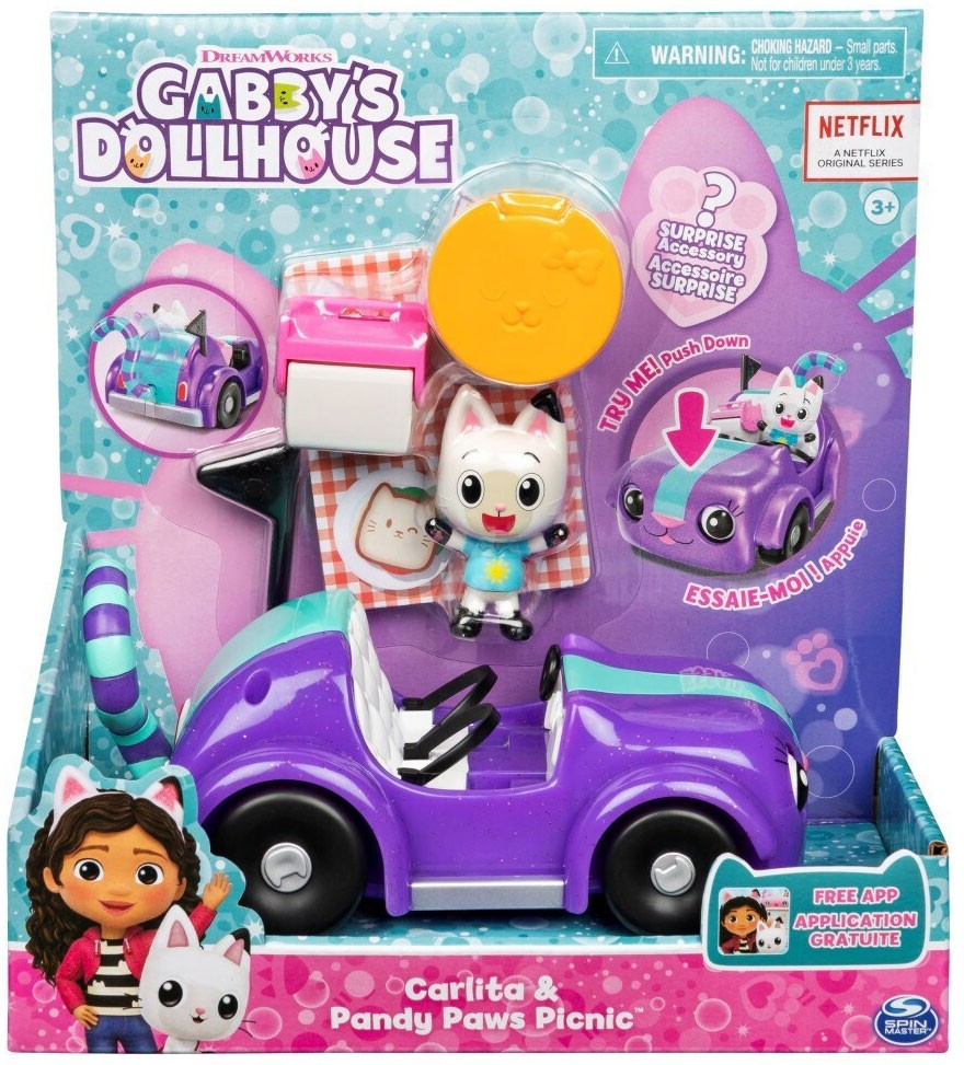 Βάλε μπροστά τη μηχανή και ξεκίνα για μια γαταστική περιπέτεια πικνίκ με την Καρλίτα και τον Πάντι Πατούσια. Η Καρλίτα είναι ίδια με το αγαπημένο χαρούμενο γατο-αυτοκίνητο της σειράς. Βάλε μέσα τον Πάντι και άλλη μια φιγούρα από το Κουκλόσπιτο της Γκάμπι, από τη συλλογή σου (οι επιπλέον χαρακτήρες πωλούνται ξεχωριστά). Η Καρλίτα ζωντανεύει κουνώντας την ουρά.