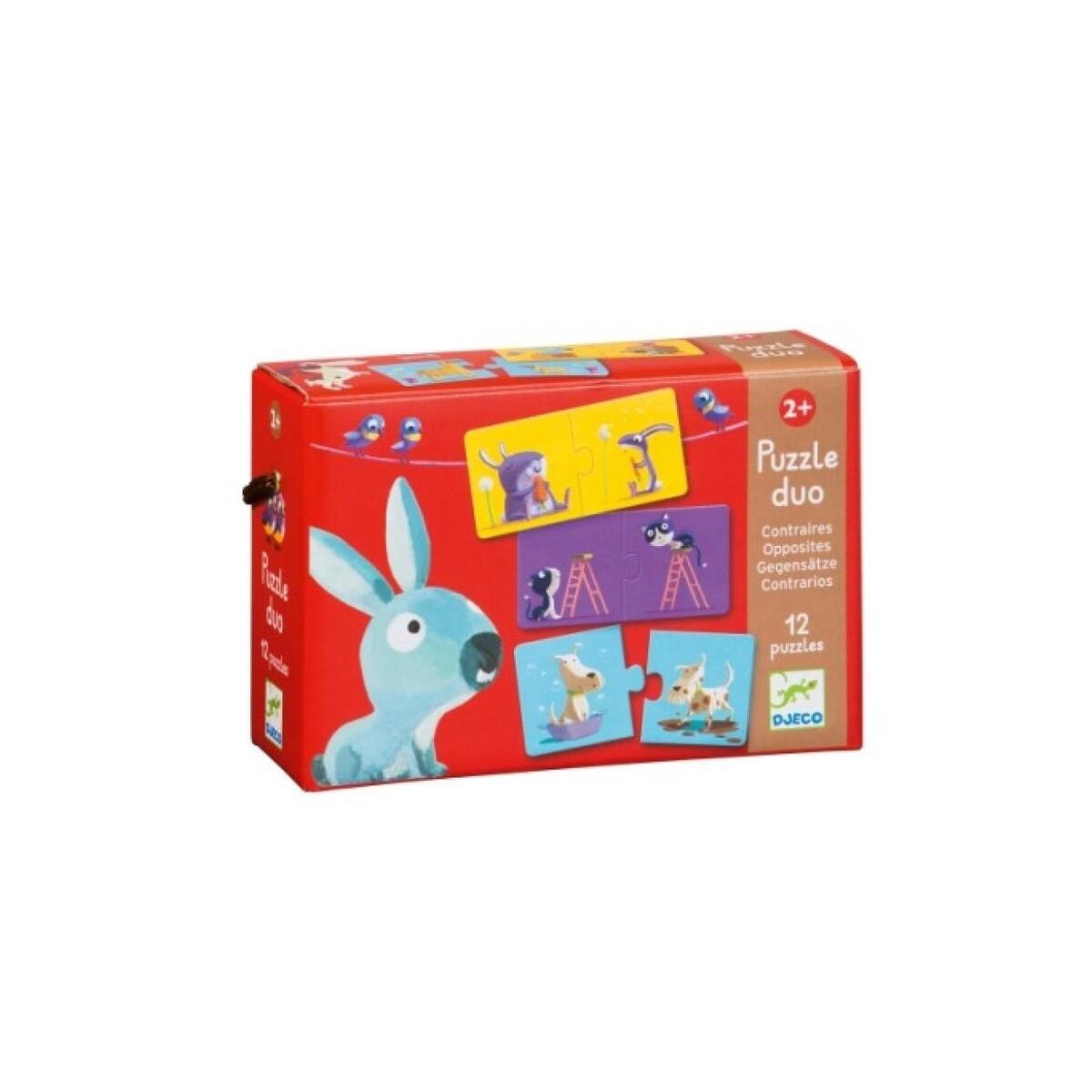 Djeco Παζλ Διπλό Αντίθετα 12×2Τμχ .Μαθαίνουμε τα αντίθετα! Παζλ από χοντρό πεπιεσμένο χαρτόνι της εταιρίας Djeco. Περιλαμβάνονται 12 παζλ αποτελούμενα από 2 κομμάτια το καθένα.
