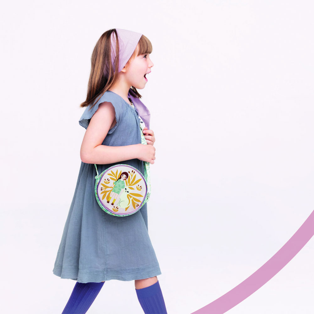 Με αυτό το υπέροχο και εύχρηστο στρογγυλό τσαντάκι της εταιρείας Djeco, το παιδί θα μπορεί να παίζει, να κινείται και να διασκεδάζει με απόλυτη ελευθερία. Ιδανικό για βόλτες ή για το σχολείο, θα το παίρνει παντού μαζί του και θα μπορεί να αποθηκεύει τα απαραίτητα αντικείμενα που θέλει να έχει μαζί του. Διαθέτει μια κεντρική θήκη που κλείνει με φερμουάρ και μπορεί να τοποθετηθεί χιαστή στο κατάλληλο ύψος αφού το λουράκι του προσαρμόζεται. Διαστάσεις: 17.5 (διάμετρος) x 17 x 4.3 εκ. Διαστάσεις Συσκευασίας: 6 x 8 εκ.