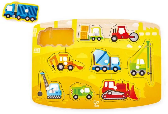 Hape Happy Puzzles Ξύλινο Παζλ Οχήματα Construction Peg (E1407A).