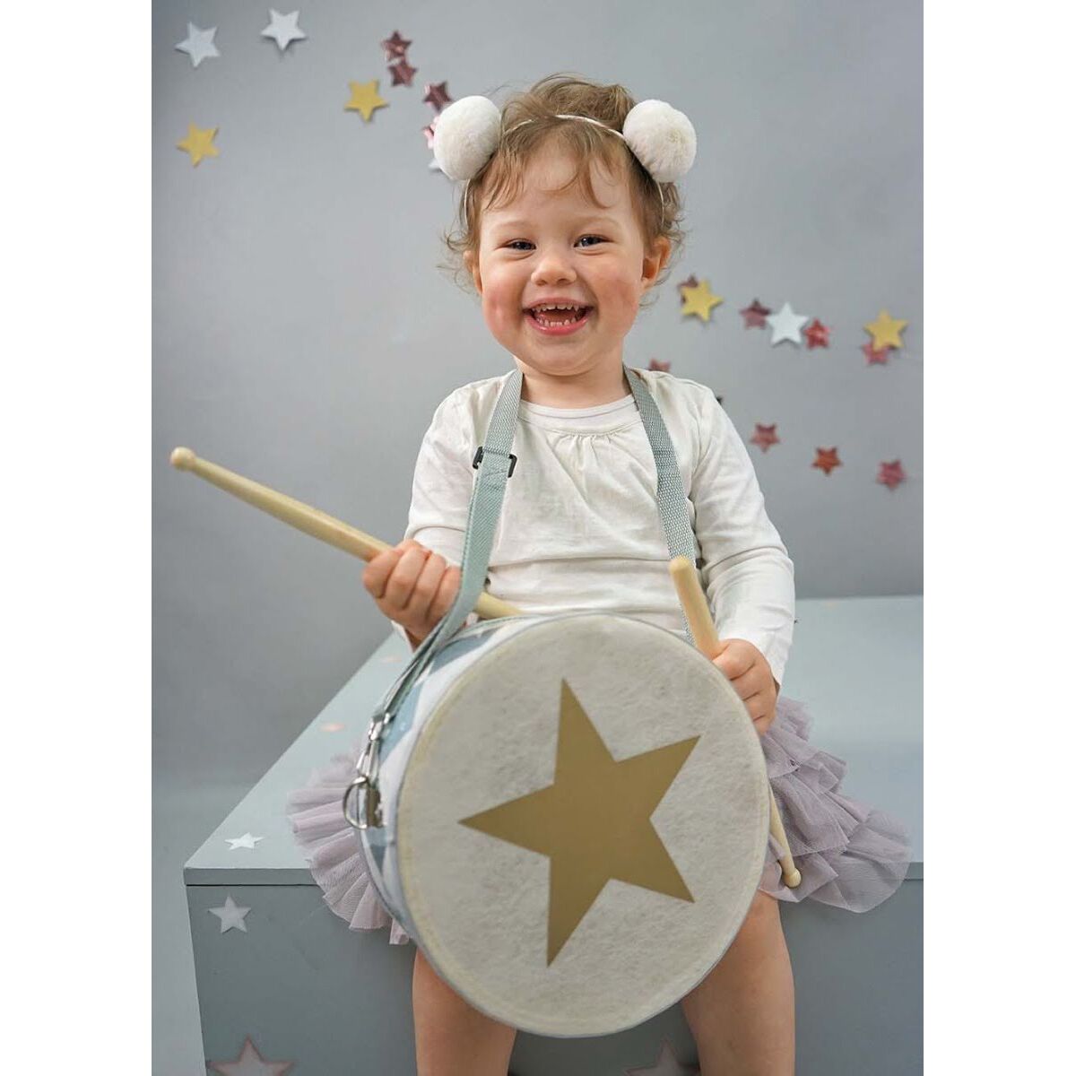 Περιλαμβάνει αφαιρούμενο ιμάντα και δύο μπαγκέτες. Κατάλληλο από 3 ετών.