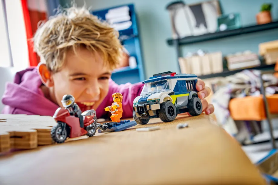 LEGO City Police Prisoner Transport Van (60479). Ετοιμαστείτε για συναρπαστικές περιπέτειες απόδρασης με το σετ κατασκευής LEGO City Police Prisoner Transport Van (60479) για παιδιά ηλικίας 6 ετών και άνω. Το μοντέλο αστυνομικού φορτηγού διαθέτει λεπτομερή καμπίνα οδηγού και κελί φυλακής με χώρο για 2 κακοποιούς. Τα παιδιά χρησιμοποιούν τη μοτοσικλέτα με την αλυσίδα και τον γάντζο για βγάλουν την πόρτα του κελιού. Απλώς προσθέστε τις μίνι φιγούρες αστυνομικού και 2 κακοποιών για επικό παιχνίδι ρόλων με αποδράσεις από τη φυλακή. Ιδανικό για δημιουργικά παιδιά και φαν των σετ παιχνιδιών LEGO City Police, αυτό το σετ κατασκευής αστυνομικού οχήματος είναι υπέροχο δώρο γενεθλίων ή κάθε περίστασης. Προσθέστε αυτό το σετ σε άλλα LEGO City παιχνίδια με οχήματα έκτακτης ανάγκης (πωλούνται χωριστά) για περισσότερη δράση και ευρηματικές ιστορίες. Τα παιδιά μπορούν να κατασκευάζουν με αυτοπεποίθηση χρησιμοποιώντας την εφαρμογή LEGO Builder, όπου μπορούν να ζουμάρουν και να περιστρέφουν σε 3D και να παρακολουθούν την πρόοδο με απλές ψηφιακές οδηγίες. Το σετ περιέχει 198 τεμάχια.