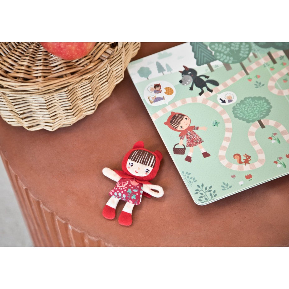 Σε αυτό το εικονογραφημένο βιβλίο, το μικρό σας θα μπορέσει να ακολουθήσει, σελίδα προς σελίδα, την πορεία της υφασμάτινης κούκλας της Κοκκινοσκουφίτσας, κατά μήκος του μονοπατιού. Θα συμμετέχει έτσι και το ίδιο σε αυτό το συναρπαστικό παραμύθι, ενώ παράλληλα θα εξασκεί τα δαχτυλάκια του.