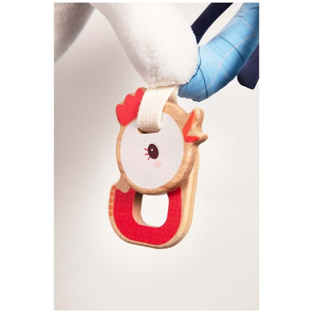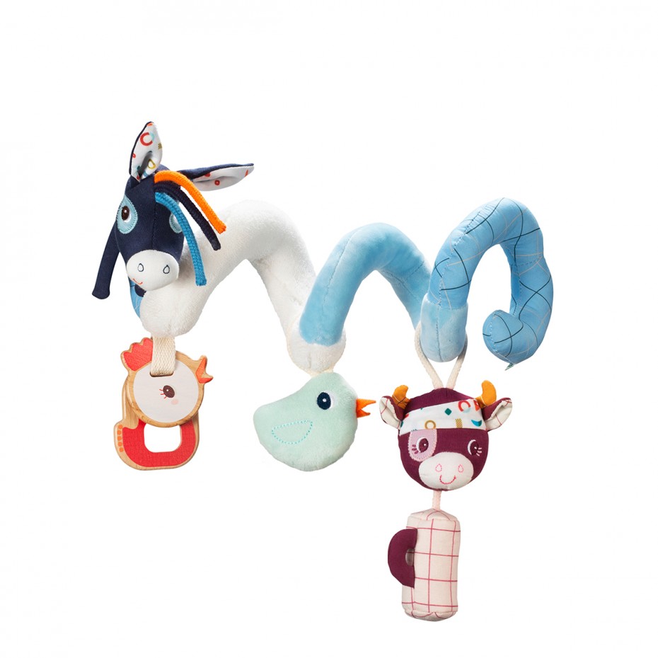 Πολύχρωμο σπιράλ με πολλές δραστηριότητες και ερεθίσματα, ιδανικό για τη βόλτα καθώς πιάνεται εύκολα οπουδήποτε! Το σπιράλ δραστηριοτήτων έχει θέμα τη φάρμα και μπορεί να πιαστεί στο καροτσάκι, στην κούνια στο κάθισμα του αυτοκινήτου. Έχει τόσες πολλές δραστηριότητες που θα κρατήσει το μωράκι σας χαρούμενο και θα διεγείρει τις αισθήσεις του.