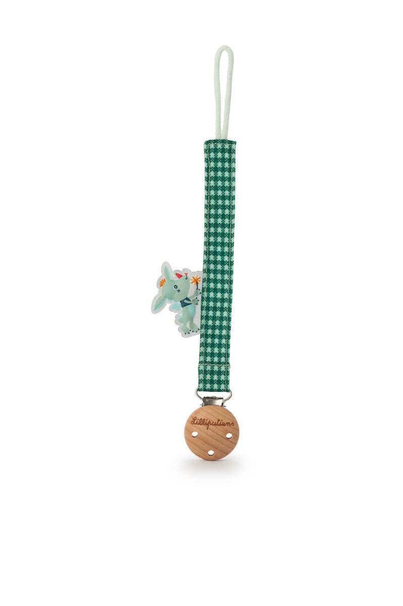Κλιπ πιπίλας από την εταιρεία Lilliputiens σε πράσινο χρώμα με καρό σχέδιο.