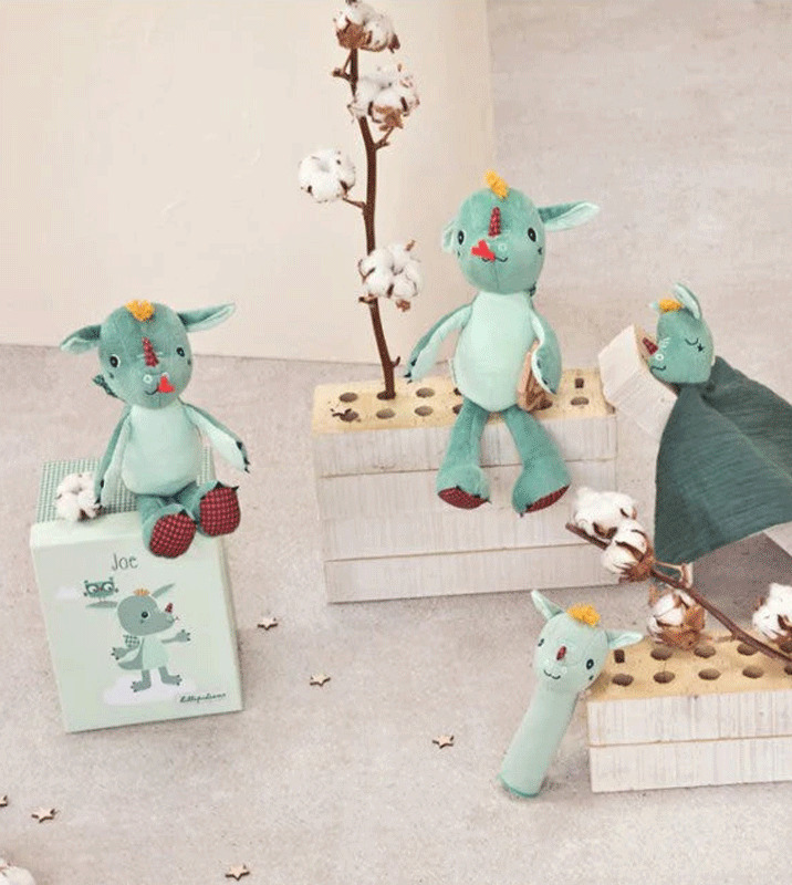Ο υφασμάτινος δράκος έρχεται σε ένα όμορφα εικονογραφημένο κουτί, καθιστώντας τον ένα πολύ όμορφο δώρο. Ο μικρός Joe έχει το κατάλληλο μέγεθος για τα μικρά χεράκια και είναι η ιδανική συντροφιά για αγκαλιές και χαλαρό ύπνο!