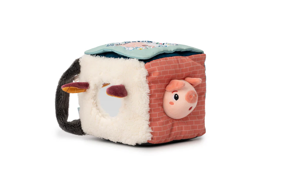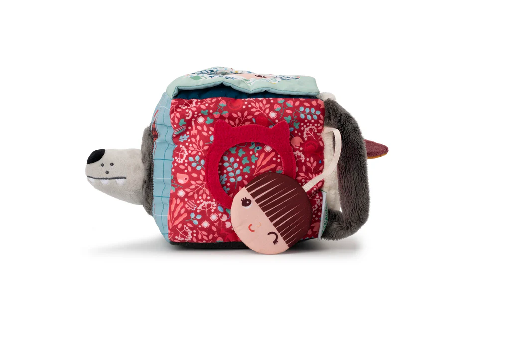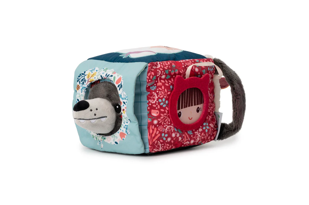 Υφασμάτινος κύβος δραστηριοτήτων Louis από τη Lilliputiens. Ένας πολύχρωμος κύβος με διαφορετικούς ήχους και υλικά, προσφέροντας μια έκπληξη σε κάθε πλευρά. Περιλαμβάνει χαρακτήρες όπως η γιαγιά, ο λύκος, η Κοκκινοσκουφίτσα και ένα γουρουνάκι. Η αντανάκλαση στον καθρέφτη αποκαλύπτει ίσως ένα προβατάκι.