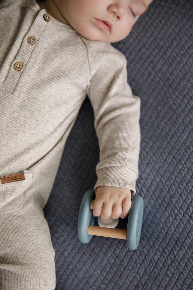 Αυτή ή χαριτωμένη ξύλινη κουδουνίστρα κυλάει και κυλάει και κυλάει , κάνοντας έναν ήχο καθώς πηγαίνει.