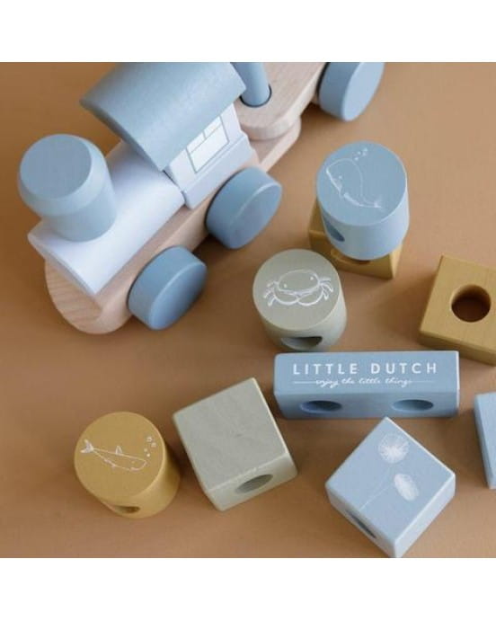 Little Dutch Ξύλινο τρενάκι με άσκηση λεπτής κίνησης Ocean 45εκ.