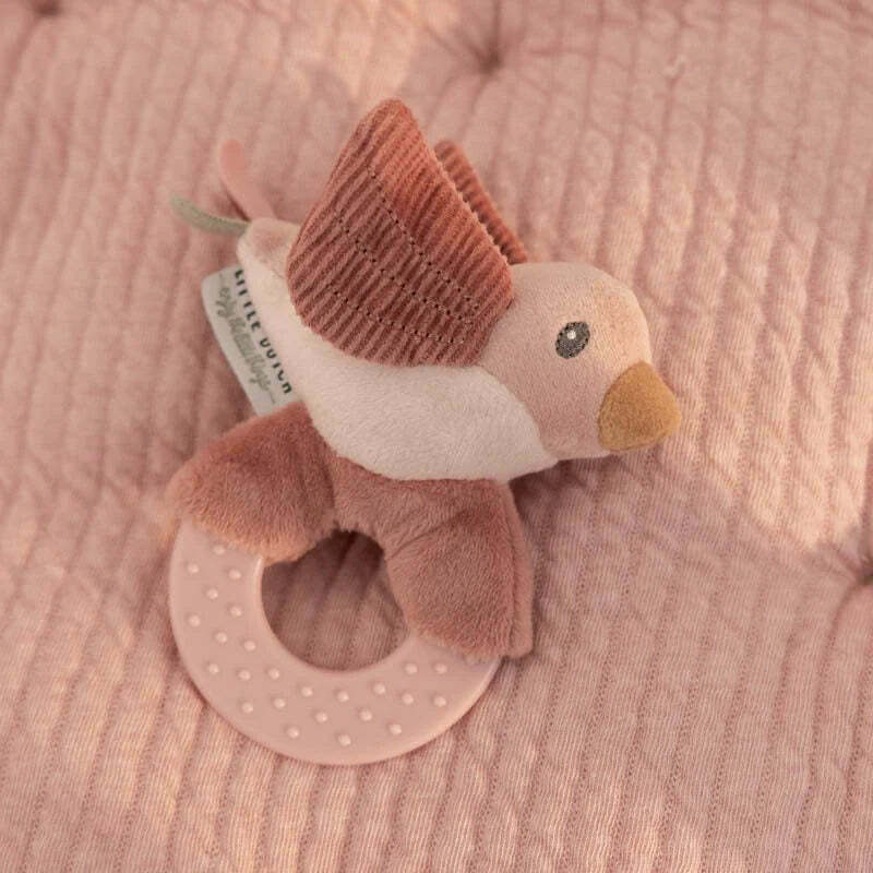 Αυτό το υπέροχο κουτί περιλαμβάνει τρία μαλακά αντικείμενα για να χαϊδεύετε, να αγκαλιάζετε και να παίζετε. Το πανί αγκαλιάς, το γλυκό σπουργίτι την Άμπι για ατελείωτες αγκαλιές και ένα δαχτυλίδι οδοντοφυΐας με ένα μαλακό πουλάκι που κροταλίζει και προάγει τον συντονισμό χεριού-ματιού, διεγείροντας την περιέργεια του μωρού.. Ο δακτύλιος θα προσφέρει επίσης καταπραϋντική δράση όταν αρχίσουν να εμφανίζονται τα πρώτα δόντια του μωρού.
