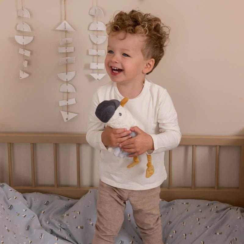 Αυτό το υπέροχο κουτί περιλαμβάνει τρία μαλακά αντικείμενα για να χαϊδεύετε, να αγκαλιάζετε και να παίζετε. Το πανί αγκαλιάς, τον γλάρο του Τζακ για ατελείωτες αγκαλιές και ένα δαχτυλίδι οδοντοφυΐας με ένα μαλακό ιστιοφόρο που κροταλίζει και προάγει τον συντονισμό χεριού-ματιού, διεγείροντας την περιέργεια του μωρού. Ο δακτύλιος θα προσφέρει επίσης καταπραϋντική δράση όταν αρχίσουν να εμφανίζονται τα πρώτα δόντια του μωρού.
