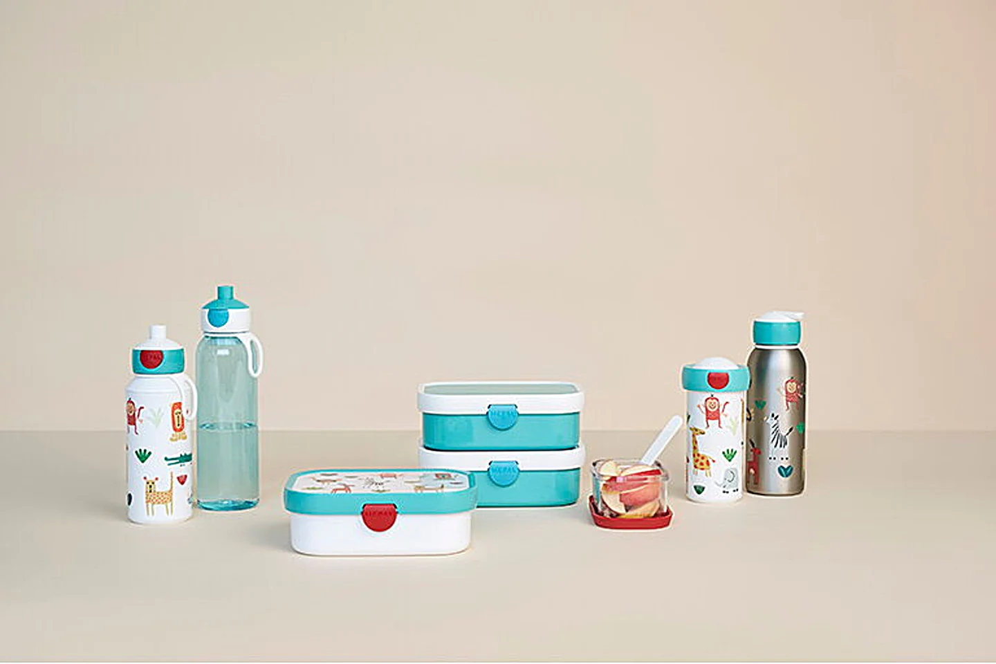 Αυτό το πρακτικό σετ περιλαμβάνει ένα pop up μπουκάλι και ένα τάπερ φαγητού με αφαιρούμενο δίσκο bento και ένα μικρό πιρούνι, ιδανικό για φρούτα ή λαχανικά. Με το pop up μπουκάλι της Mepal πιέστε απλά και πιείτε μια γουλιά από το στόμιο. Πατήστε ξανά και κλείνει. Είναι εγγυημένα στεγανό και είναι απλό στη χρήση, ακόμη και για μικρά παιδιά. Το τάπερ φαγητού είναι ιδανικό για να παίρνετε μαζί σας το γεύμα ή τα σνακ του παιδιού σας όταν είστε έξω από το σπίτι. Είτε πρόκειται για σχολείο, είτε για παιδική χαρά, αυτό το σετ φαγητού θα είναι μεγάλη βοήθεια για το παιδί σας.