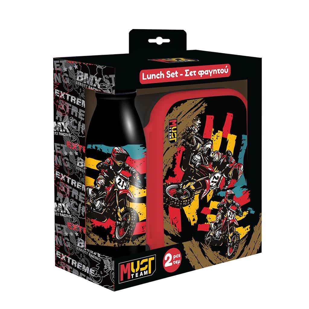 Tο σετ φαγητού Must Team Μοτοσυκλέτα προσφέρει έναν πλήρη συνδυασμό για το καθημερινό γεύμα του παιδιού. Παράλληλα ο εντυπωσιακός σχεδιασμός με τη μηχανή motocross ενθουσιάζει κάθε μικρό αναβάτη στις σχολικές του δραστηριότητες. Το παιδί απολαμβάνει το σνακ και το νερό του με απόλυτη ασφάλεια και στυλ κάθε στιγμή.